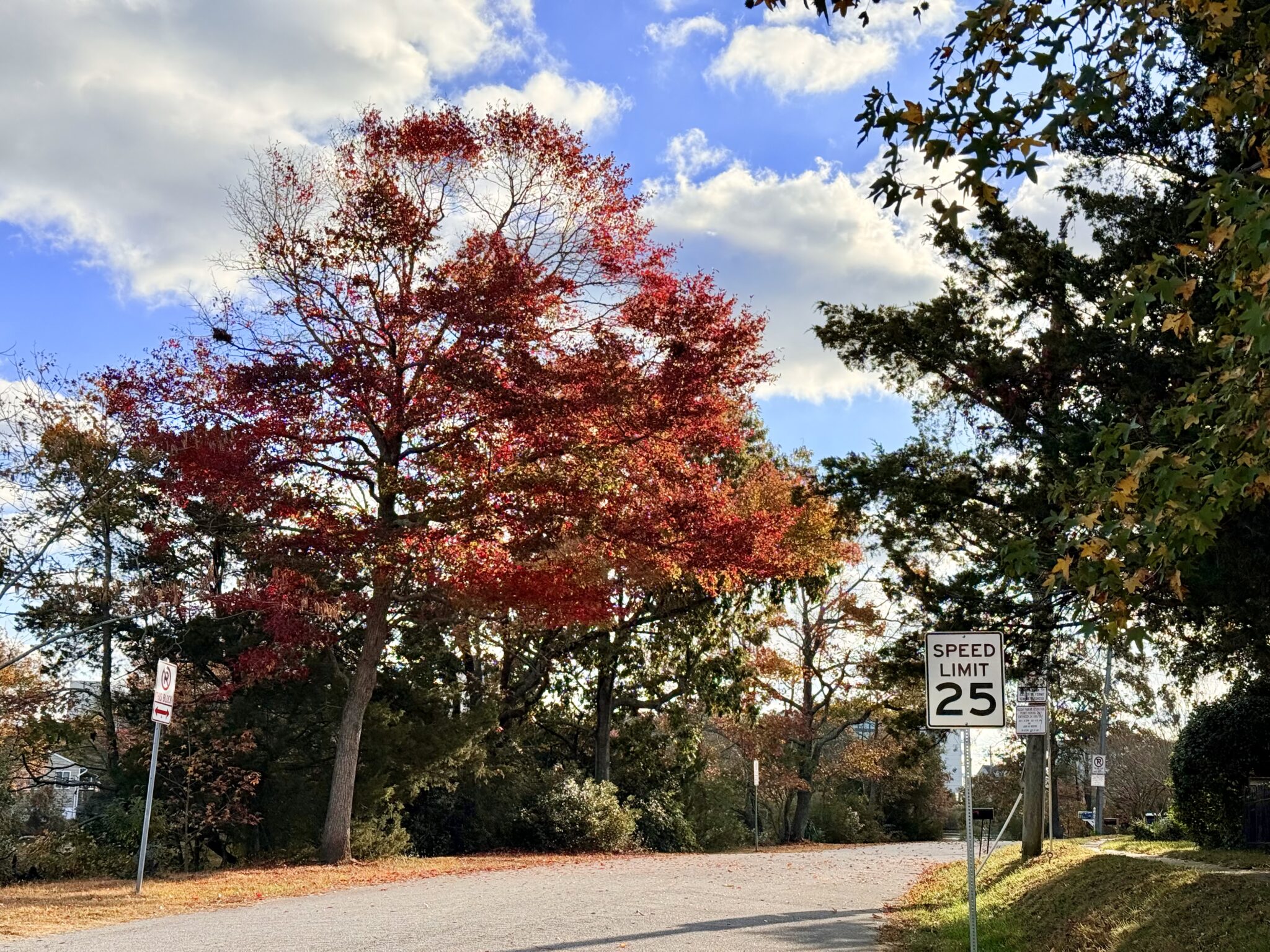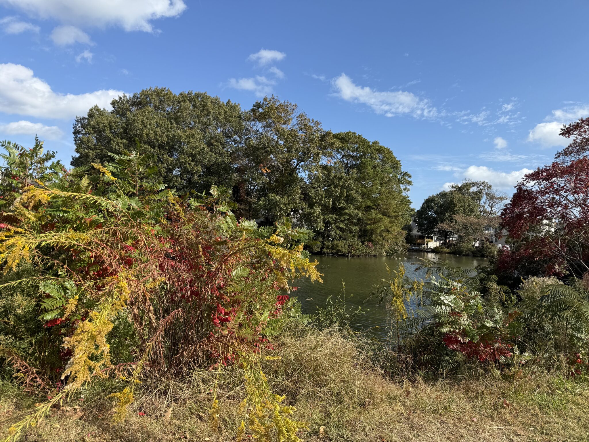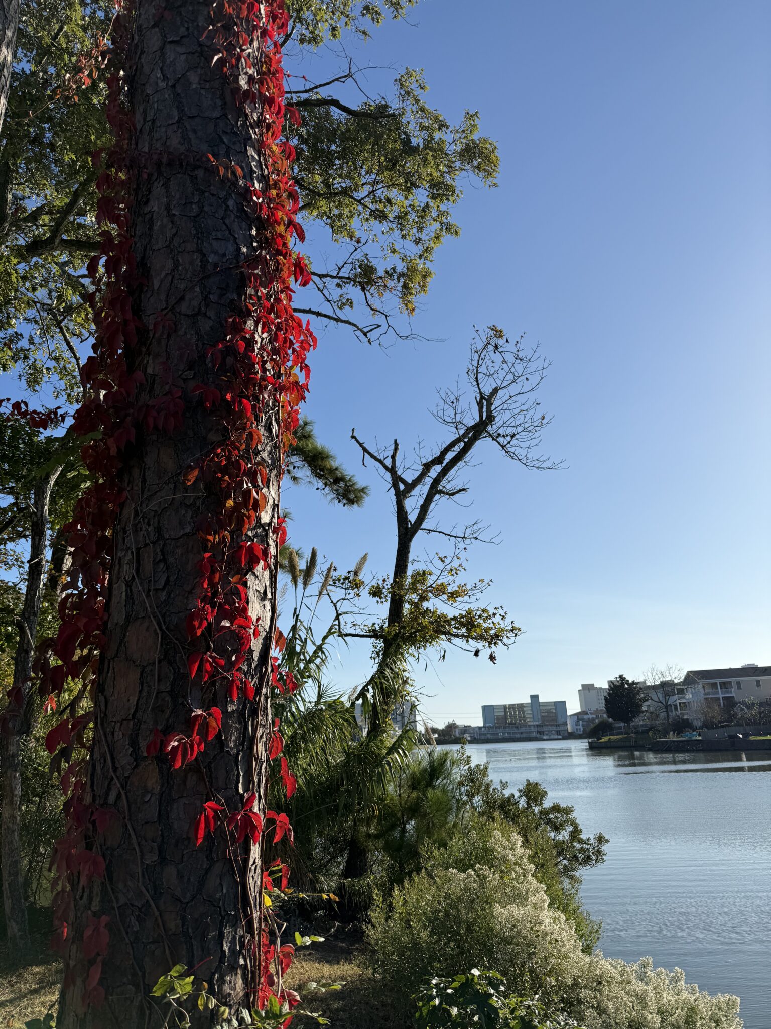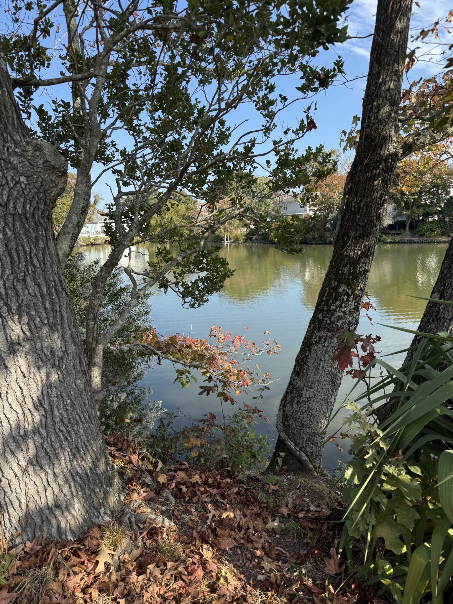As December approaches and the last of the autumn leaves flutter to the ground, I’m grateful that this is the second fall in a row a nor’easter or hurricane hasn’t robbed us of the season’s colors. Our late-turning trees often lose their leaves in late September or early October before they’ve had a chance to impress us at their brilliant peak with stunning shades of yellow, orange, and red. Here are just a few glimpses of the fall foliage through the lens of my many, many dog walks around the VB Oceanfront.